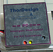 「姿勢制御」といっても、実際にRCサブマリンで問題になるのは、潜航中におけるピッチング方向の角度調整ということになる。 これには艦尾のスタン・プレインと、それを動かすサーボ・モーターに接続されたピッチコントロール・システムを用いて半自動でコントロールする方法が一般的だ。 それでは、艦首バウ・プレインは何のために付いているのか?それは潜航中の深度そのものを調整する働きを担っている。 図を見ていただこう。 例えばトリムアングル・ゼロと送信機から設定したケースで水流などの外力や艦首バウ・プレインの角度変更などで艦が下方に傾いたしよう。すると、すかさずピッチコントロール・システムがピッチング方向の角度変化を察知し、スタン・プレインを作動させるサーボにトリムアングルがゼロとなるよう自動的に当て舵を打たせるのだ。これは、例え艦首バウ・プレインの角度をアップにしてもダウンにしても同じことだ。 艦がどのような状況になろうとも、艦尾のスタン・プレインは送信機の介して命令された艦のトリムアングルを忠実に維持するのである。 実際のオペレーションでは,浮上から潜行に移るときはトリムアングルをダウン、すなわち艦首が下がるように、潜行から浮上ではその逆にトリム・アップするのが一般的だ。もちろんトリム・ゼロのままバウ・プレインを下げれば、艦首を下げずに水平状態を保ちながら深度を下げていく。 RCサブの潜行をビデオを見ると、ちょうど水族館の大水槽を泳ぐ大魚と見間違うような印象である。 この様に艦尾スタン・プレインで潜行角度を調整、艦首バウ・プレインで深度そのものを操るのが、RCサブの基本コントロールだ。 メイン・タンクを調整、浮力バランスをゼロとしたうえで、前進させながら艦首バウ・プレインを下げれば深度が下がり、逆にバウ・プレインに操作すれば、深度を上げることができる。艦の姿勢は艦尾スタン・プレインの自動制御に任せておけばいいのだ。 もちろんピッチコントローラーによる半自動制御なしでも潜行させる事は可能だが、ピッチコンでコントロールされるスタン・プレインがあった方が艦の姿勢制御や深度コントロールは、はるかに容易かつ正確な物になるは明らかだ。 艦尾スタン・プレインでコンロールされるピッチング方向の潜行トリム角度半自動制御には振子を用いたボリュームやフォトセンサー等で制御される。当クラブの重鎮で、副会長でもあるNagata氏が製作されている、HONN MODEL CRAFT KOBEのAuto PitchControl【HLC−04型】がそうである海外ではサブテック社のAutomatic Leveling ControlのAPC−4やThor DesignのPC−2 Intelligent Pitch Control等がある。 さて、ある程度以上の深度まで潜ってしまうと、操縦する地上からサブマリンの姿勢を捉えることは困難になってしまう。 ここで重要になるのが、航行深度に関してはマニュアルでコントロールするしかなかった。そこへサブテック社から圧力センサーを応用した新製品、オートマティック・ディプス・コントロール(自動深度調整装置)が登場する。これはバウ・プレインに接続することになる。