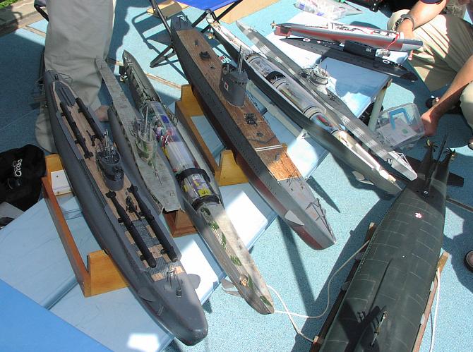 広島の田村さんのキロ級。汎用WTCにハンディウオッシュレットのポンプを組み込みバラスト付きに改造してあります。ポンプだけ販売していないので製品から取り出さないといけないのがネックとか 左から3艇がサブマリン707さんの艦・明細模様の「Z−C」がレベル1/72改雲山さんの艦