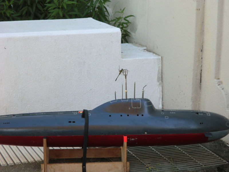 | ▲河島氏 大きな船体が迫力の おやしお型。大型のWTCを搭載。残念ながら 浸水でドックインしてしまいました | |