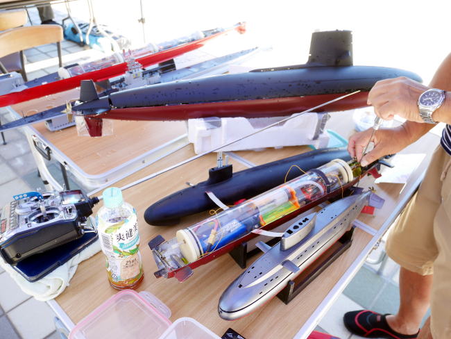 | ▲ ドック・アキ氏 フライングサブ シービュー号、ゴム動力潜水艦 | ▲ 瑞俊 うんりゅう、ふゆづき、DDG-177やましろ、オハイオ級、 |